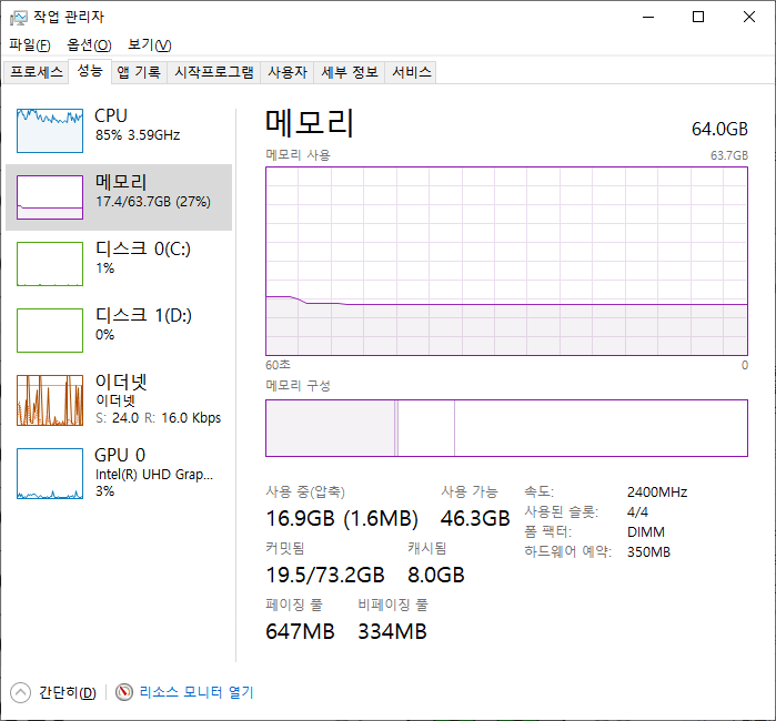 64기가면 가만히 있어도 10기가를 써버려요!!!