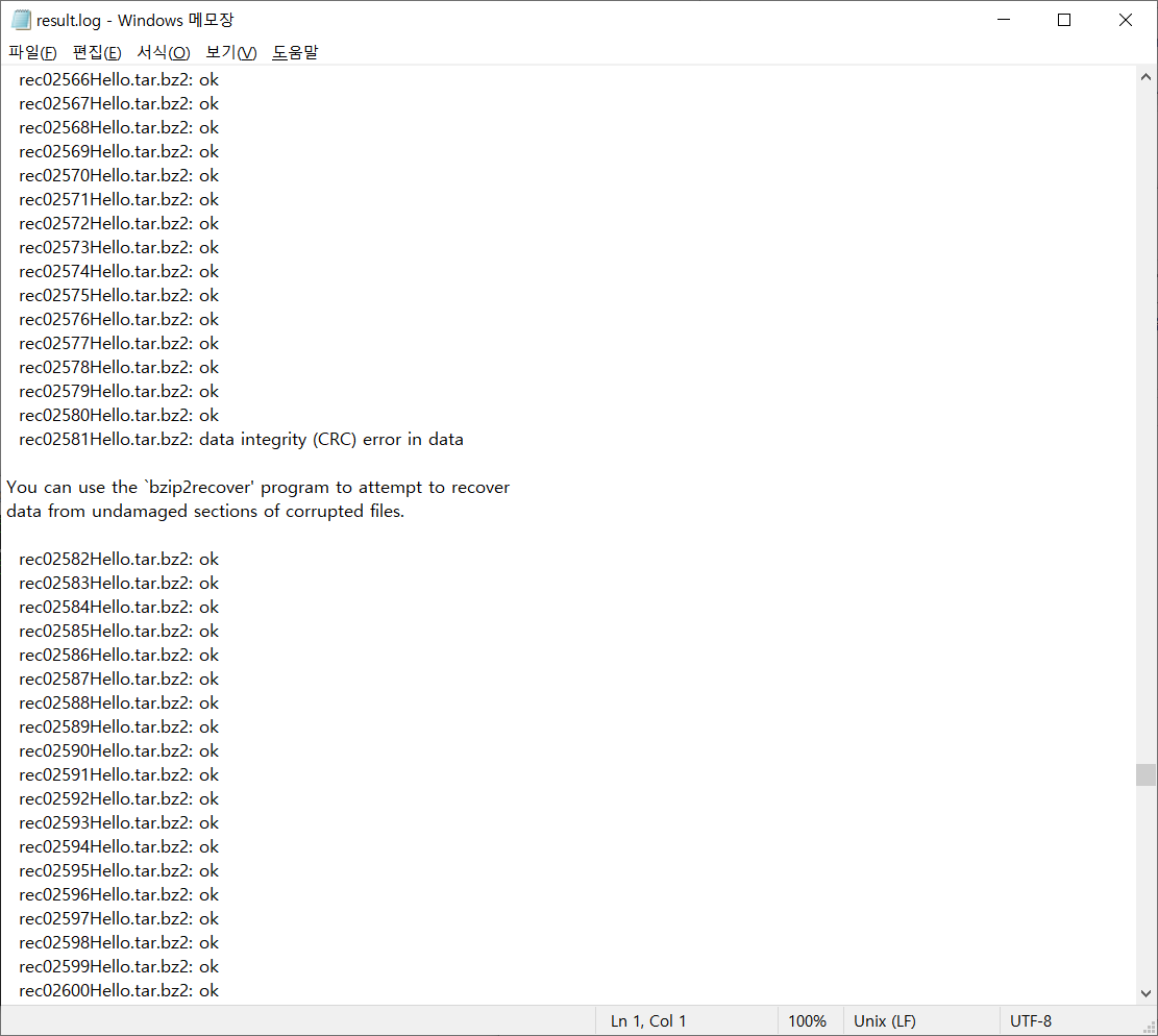 이 원문을 참조해서 작성되었습니다. rhinomite님께 감사드립니다 : https://www.linuxquestions.org/questions/linux-general-1/help-need-to-recover-corrupt-bzip2-files-289800/