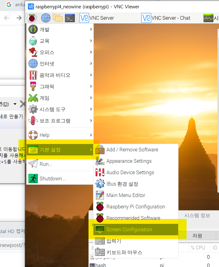 먼저 VNC로 라즈베리 파이에 접속해줍니다.