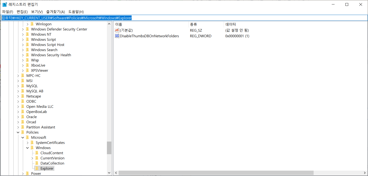 컴퓨터\HKEY_CURRENT_USER\Software\Policies\Microsoft\Windows\Explorer