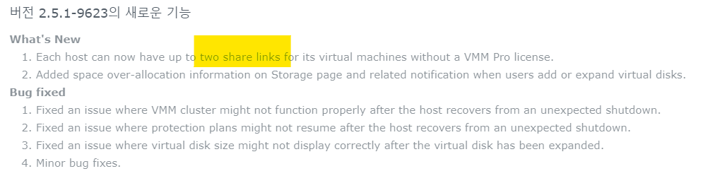 시놀로지 VMM을 업데이트하면 다음과 같이 공유링크 생성 갯수 제한이 걸립니다.