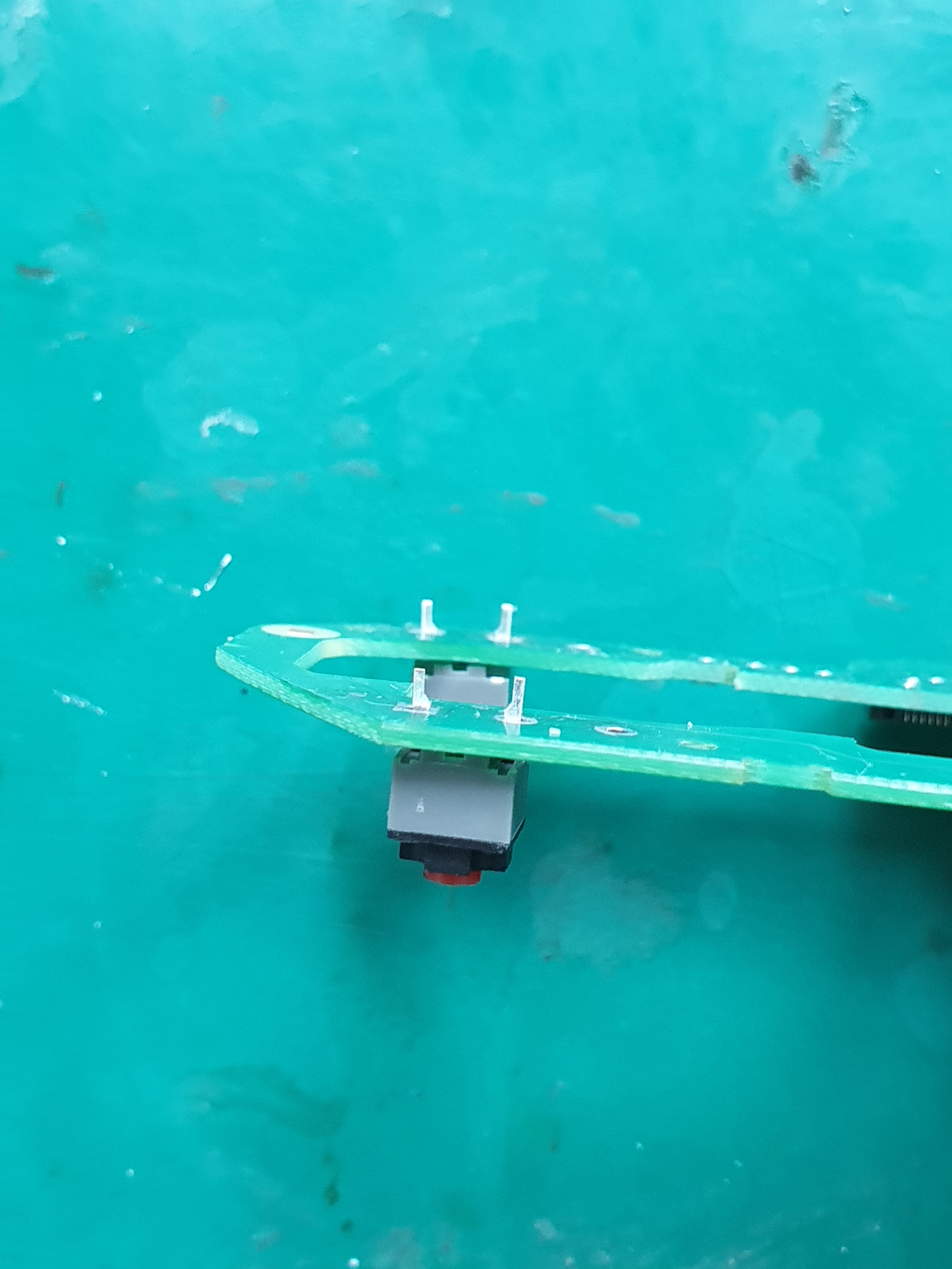 적당히 납땜해줍니다. 오랫동안 인두를 지지면 스위치 내부의 고무 버튼이 녹을 수 있으니 조심해주세요.