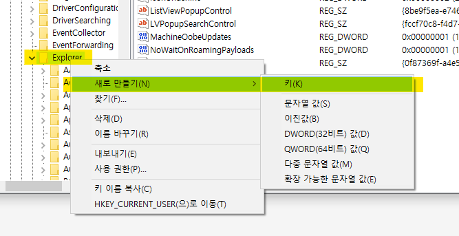 키 이름은 Shell Icons로 설정합니다. 키가 이미 있다면 이 단계는 넘어가세요.