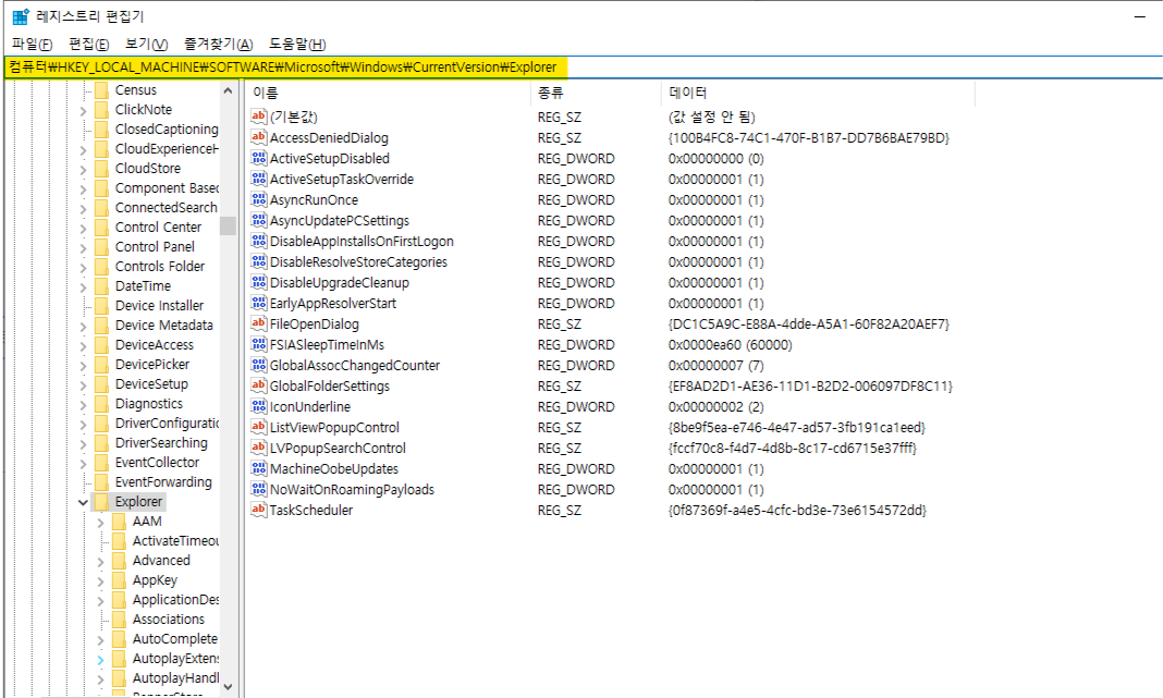 컴퓨터\HKEY_LOCAL_MACHINE\SOFTWARE\Microsoft\Windows\CurrentVersion\Explorer |