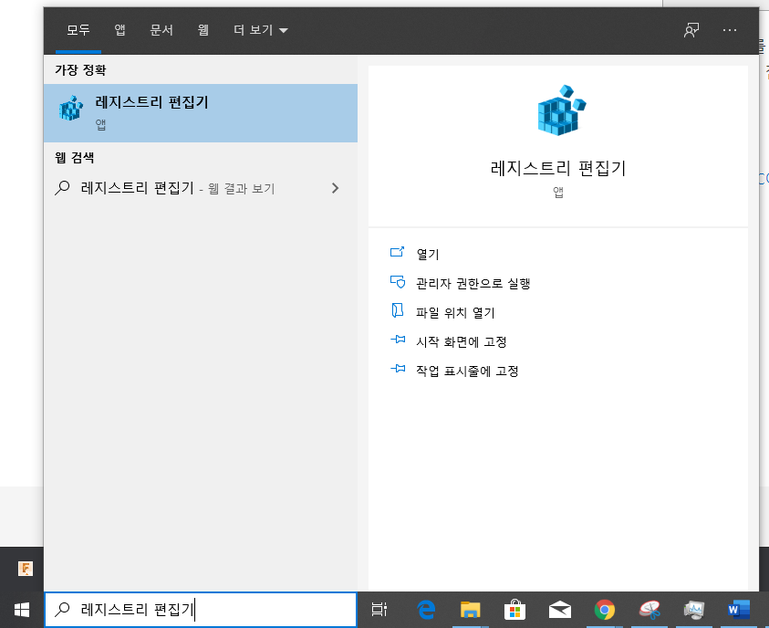 2.1. 레지스트리 편집기를 실행해주세요.