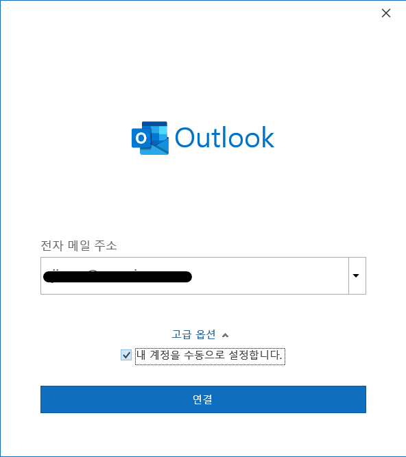 ☑ 내 계정을 수동으로 설정합니다. 항목에 체크한 다음 연결 단추를 클릭하세요.