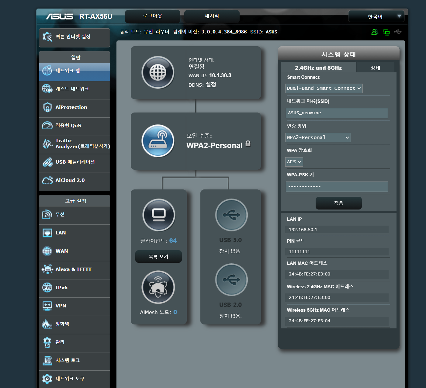 보급형 라인업이지만 결코 저렴하지 않은 공유기인 AX56U는 AiMesh 역시 잘 지원하고 있습니다