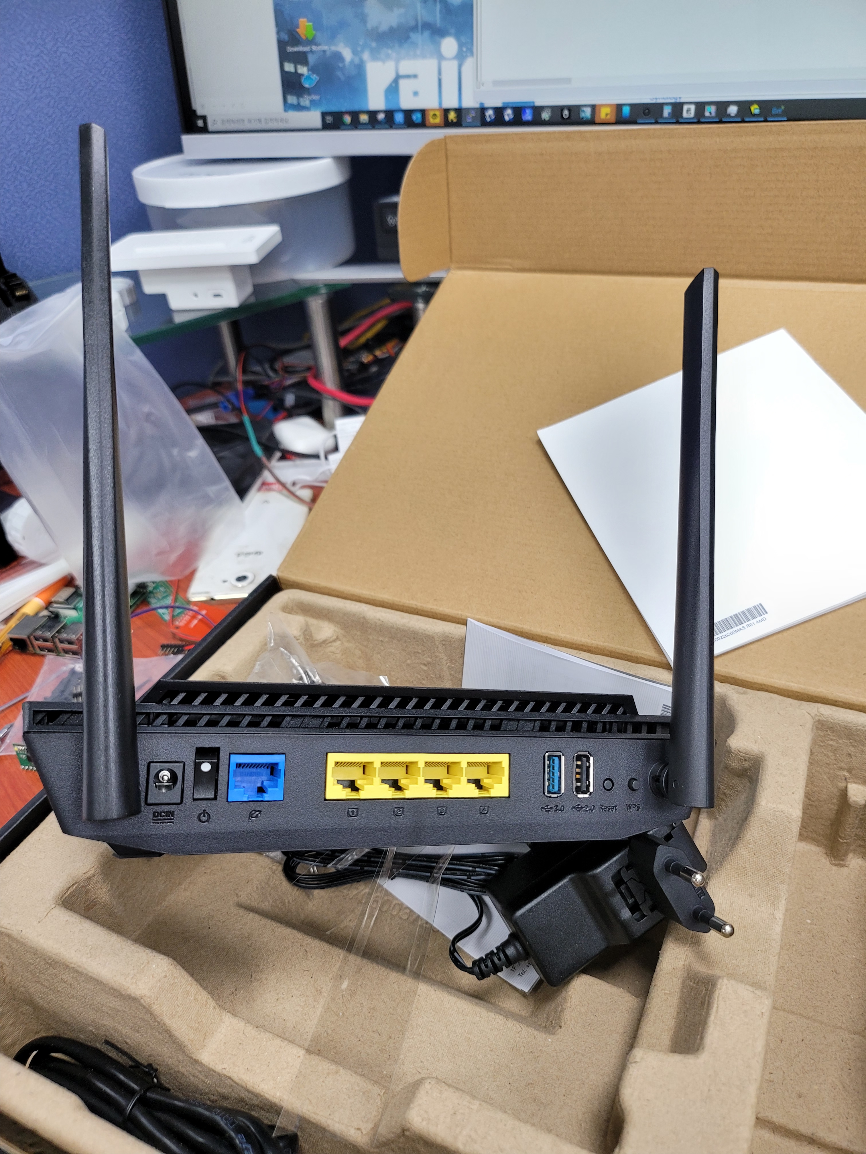 회사 돈을 남냠(?)해서 구입한 Asus의 보급형 라인 802.11ax Wi-Fi 6 지원 RT-AX56U가 배달 왔습니다.