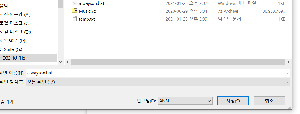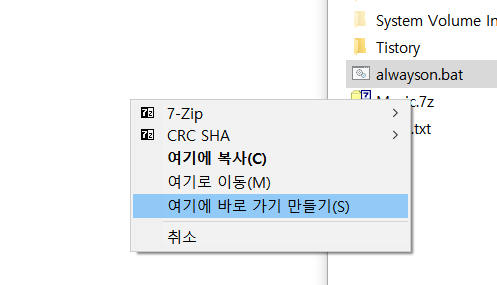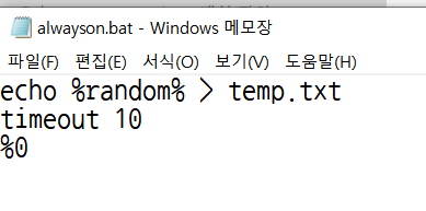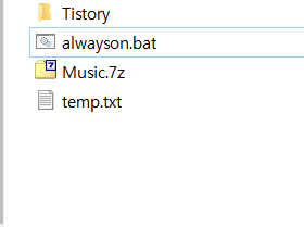 파일 이름은 alwayson.bat으로 하도록 하겠습니다.