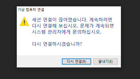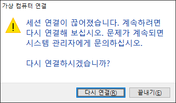 세션 연결이 끊어졌습니다. 계속하려면 다시 연결해 보십시오. 문제가 계속되면 시스템 관리자에게 문의하십시오.