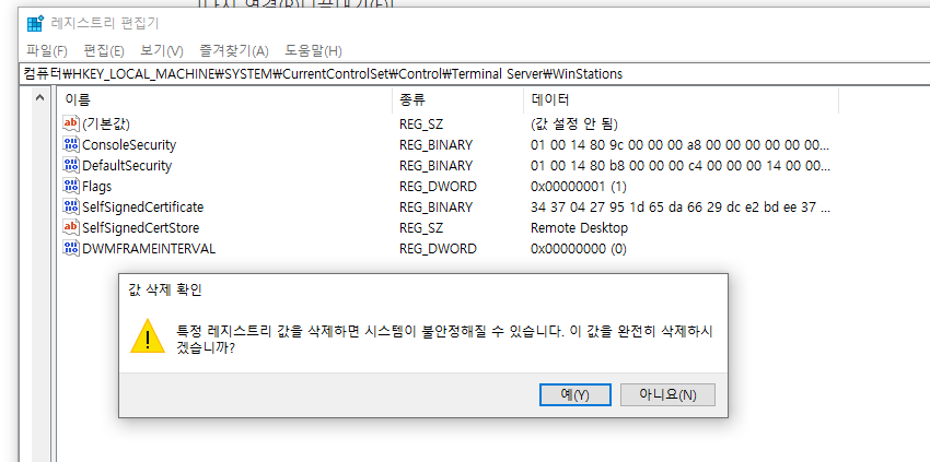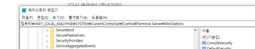컴퓨터\HKEY_LOCAL_MACHINE\SYSTEM\CurrentControlSet\Control\Terminal Server\WinStations