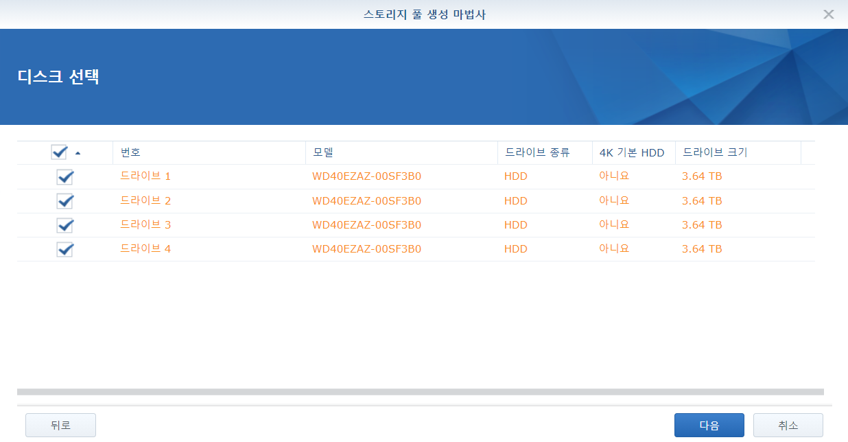 시놀로지는 모든 소프트웨어가 4K 네이티브 HDD를 지원하니 이를 지원하는 HDD를 사용하는 것이 좋습니다.(용량이 크다면 당연히 지원하지만, 512바이트 청크를 에뮬레이션하고 있을 수 있습니다.)