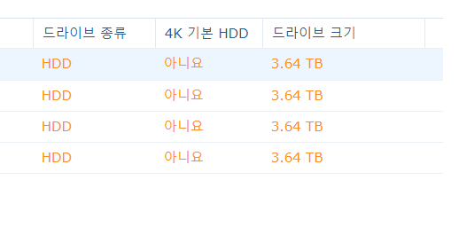 시놀로지는 모든 소프트웨어가 4K 네이티브 HDD를 지원하니 이를 지원하는 HDD를 사용하는 것이 좋습니다.(용량이 크다면 당연히 지원하지만, 512바이트 청크를 에뮬레이션하고 있을 수 있습니다.)