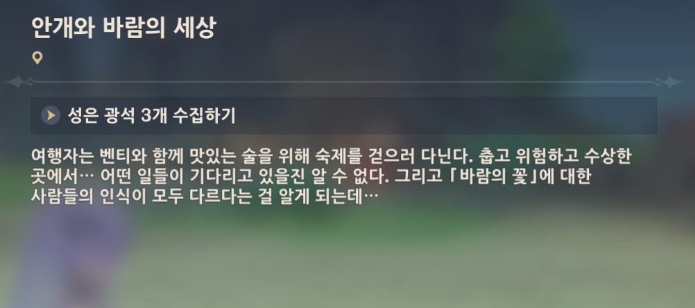 여행자는 벤티와 함께 맛있는 술을 위해 숙제를 걷으러 다닌다.