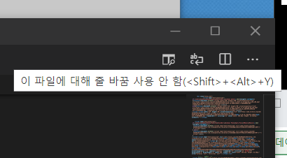 상단에 있는 "이 파일에 대한 줄 바꿈 사용 안 함(Shift+Alt+Y)" 버튼을 눌러주시면 됩니다.