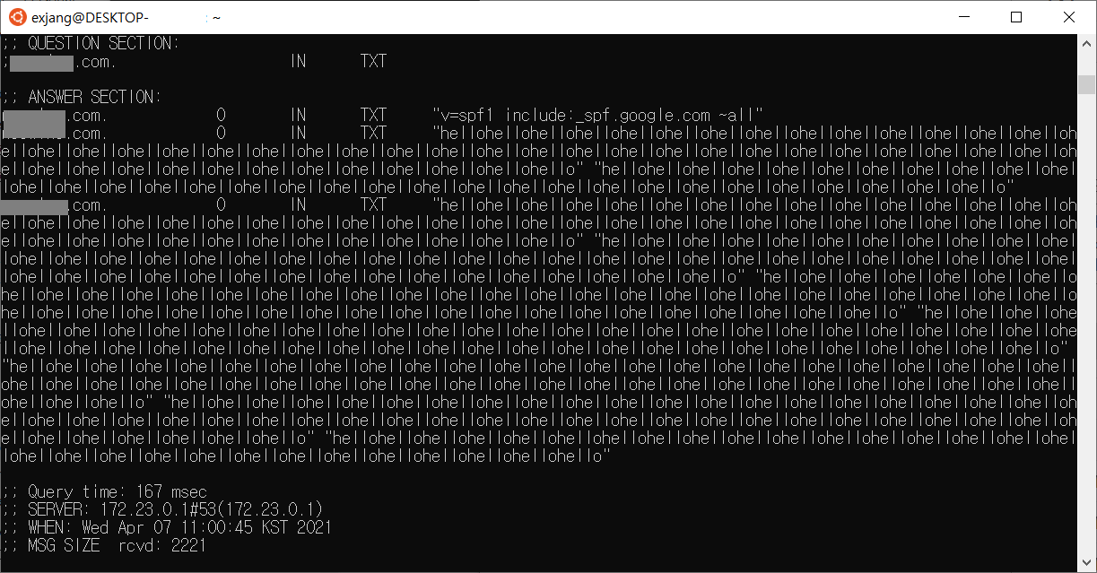 위 사진의 경우에는 2221바이트의 TXT 레코드를 가지고 있습니다.