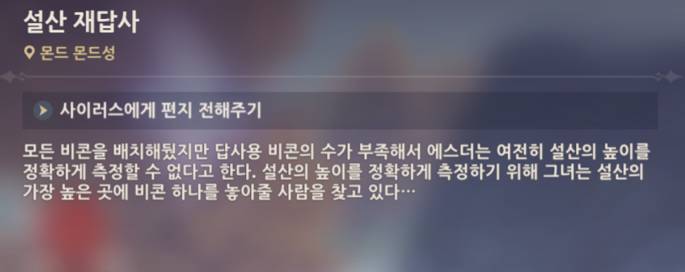 설산 월드 임무 - "설산 재답사" 임무 중 등장