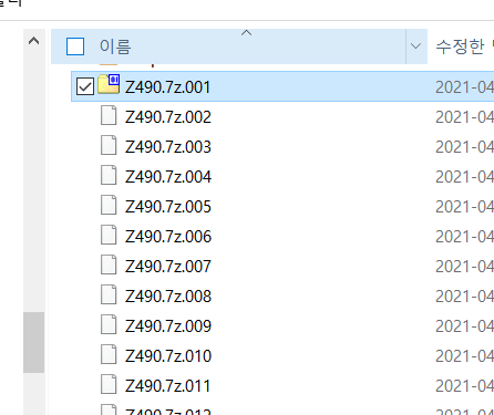 188개 다 받으셨으면 첫번째 파일을 7-zip으로 여세요