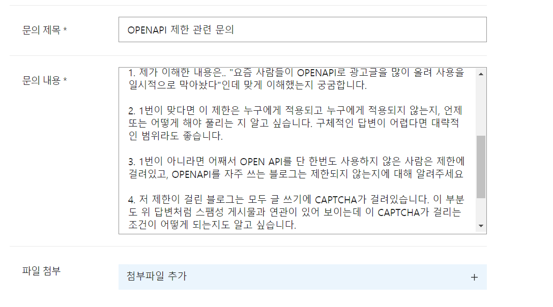그리고 CAPTCHA를 묻는 블로그는 반드시 API가 제한되어 있습니다.