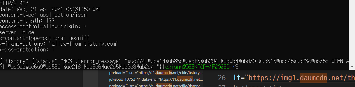 티스토리에 OPEN API를 사용해 댓글을 요청했는데 다음과 같은 응답이 돌아왔습니다.