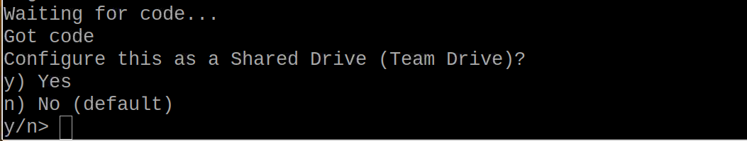팀 드라이브에 접근하려면 y, 아니면 n입니다.
