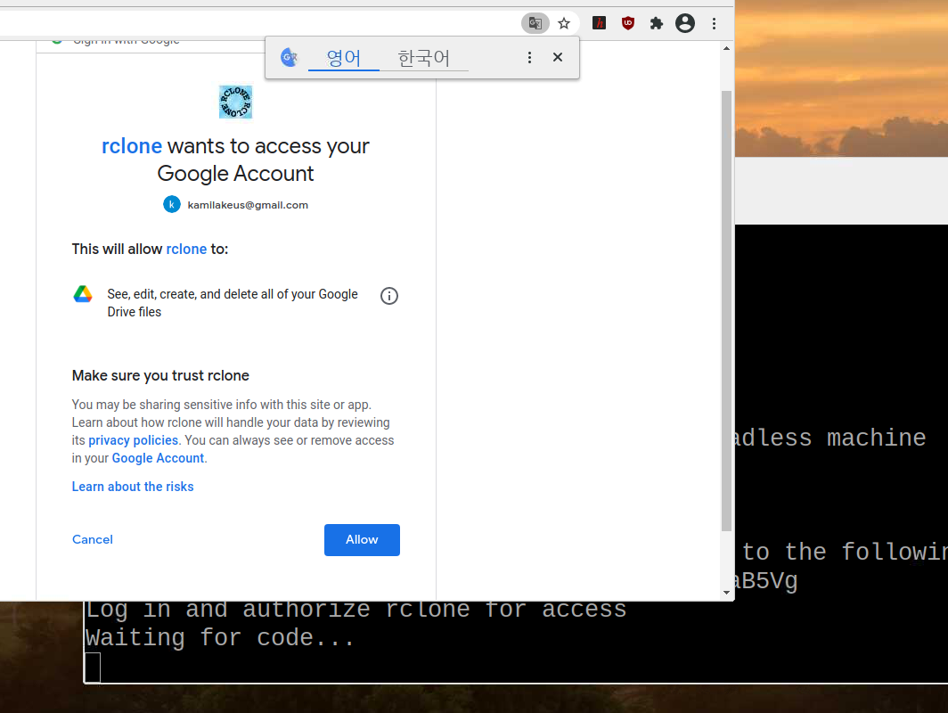 다음 명령으로 한방에 RCLONE을 설치할 수 있습니다.