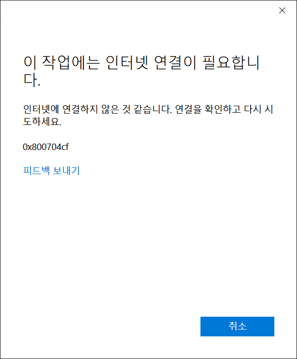 이 작업에는 인터넷 연결이 필요합니다.