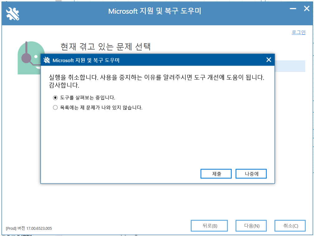 MS공홈에서 아래 도구를 돌려보라고 안내받은 게 있는데 시간이 되시면 돌려봐도 좋겠습니다.