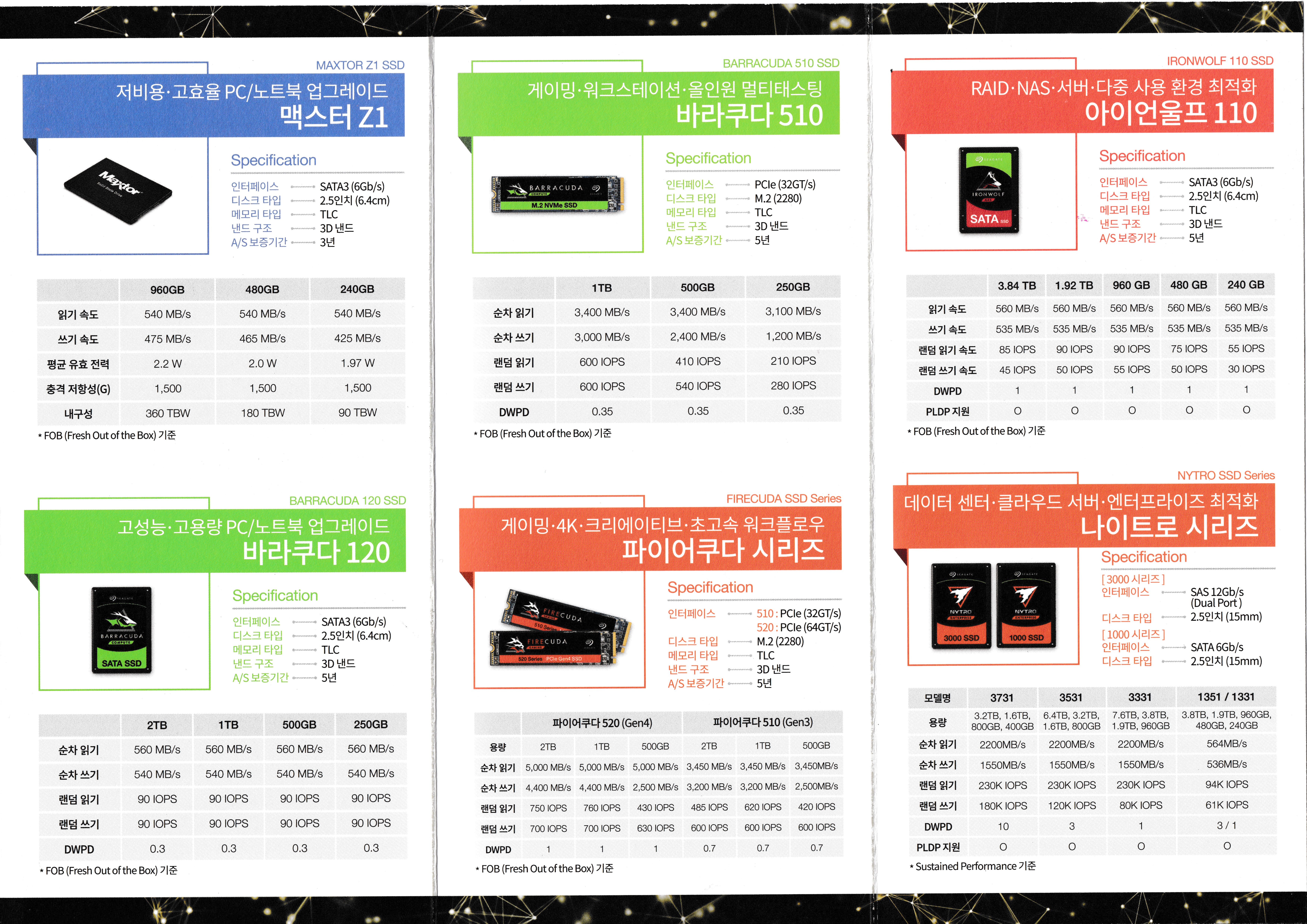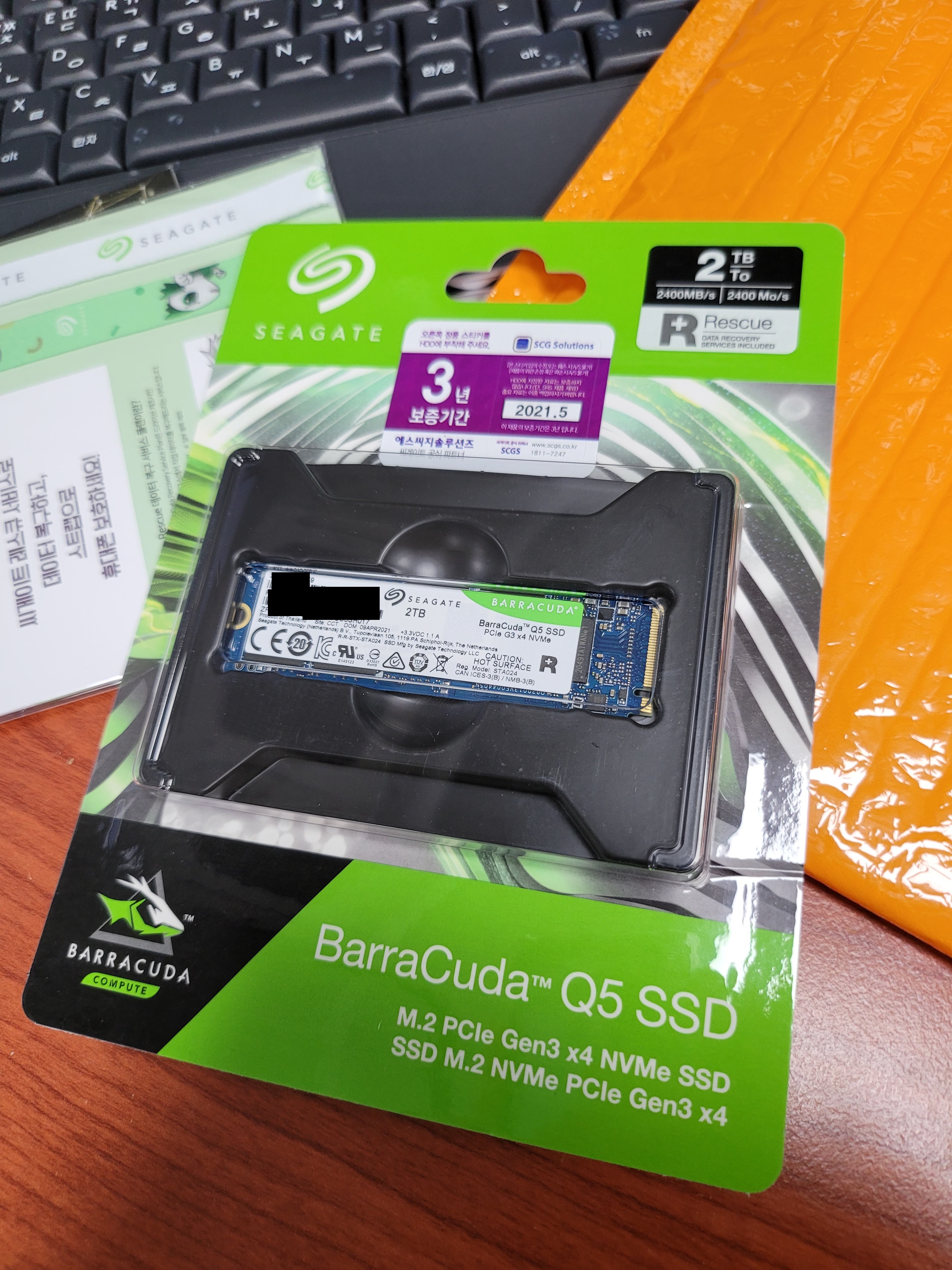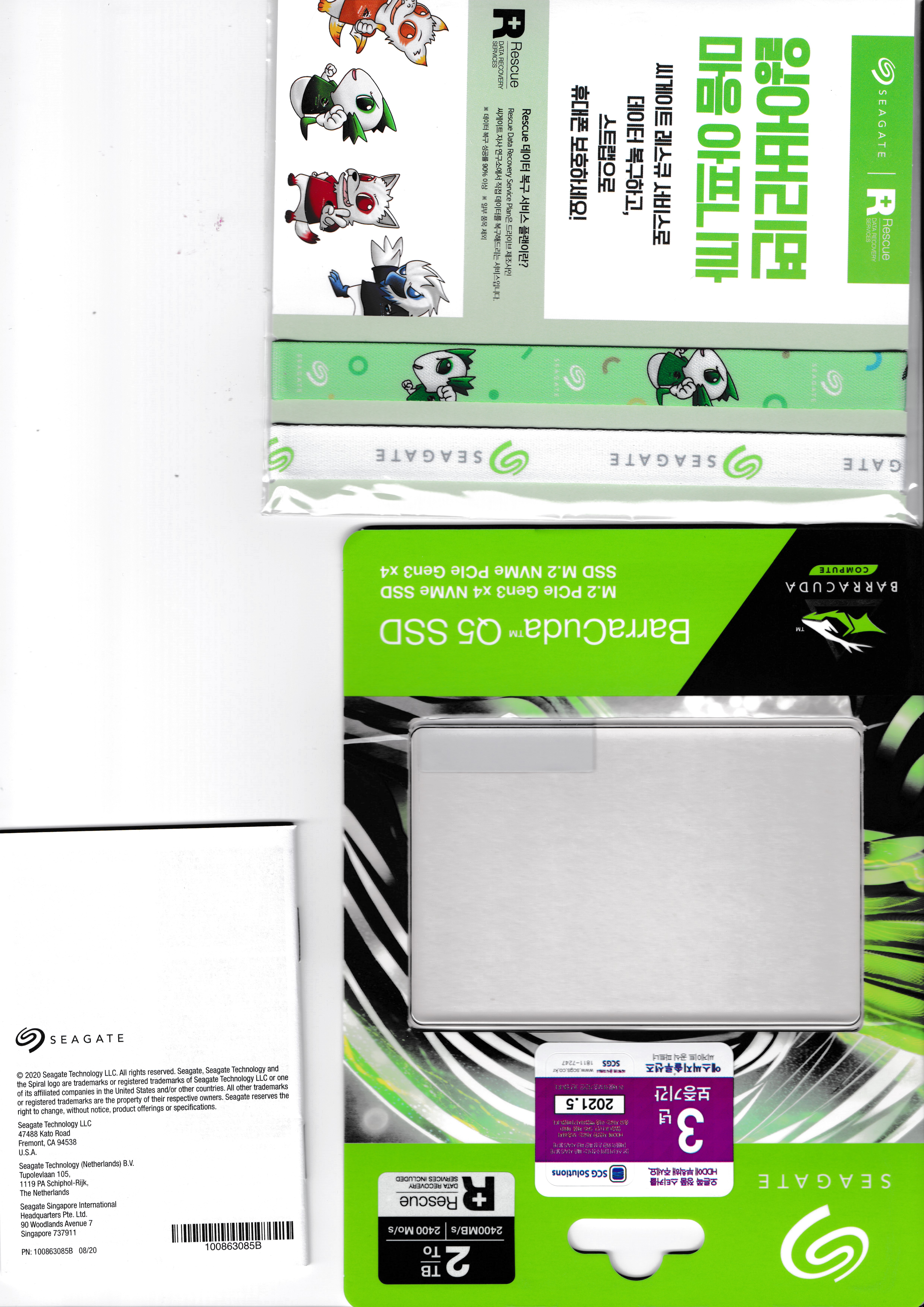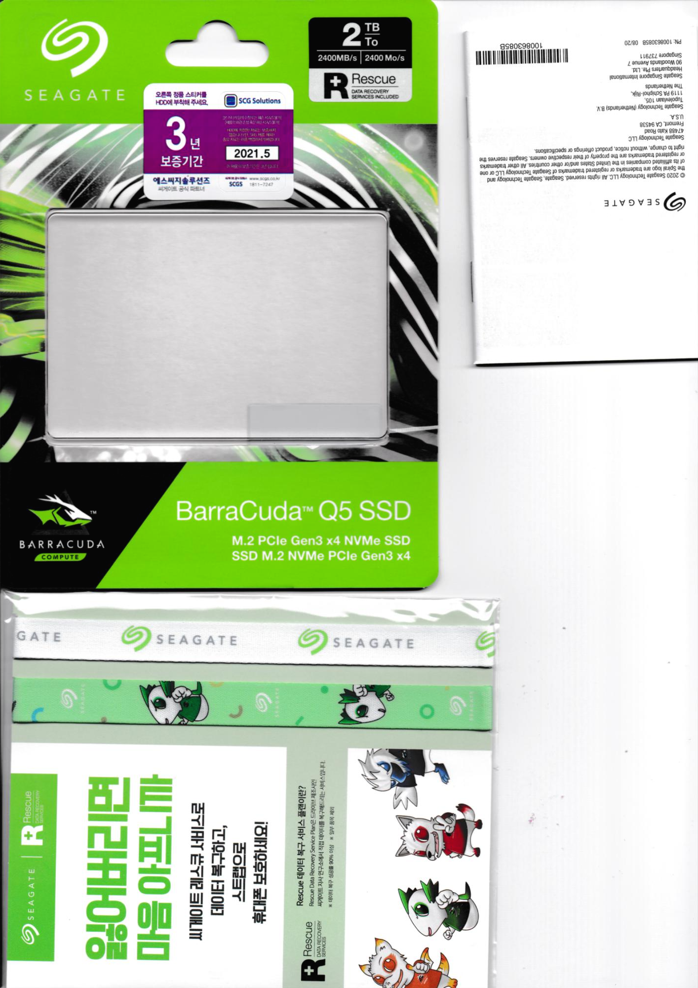 SSD 앞/뒷면입니다. 별 특이사항은 없지만 바라쿠다 시리즈의 색상인 녹색 로고가 눈에 띄네요