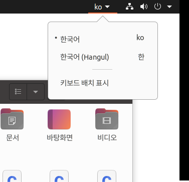 상단바에서 키보드 배치를 띄워보면 해당 PC 캡스락 상태를 알 수 있습니다.
