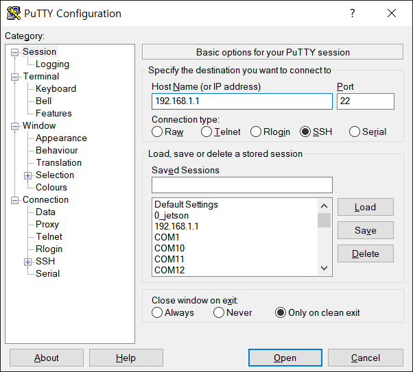 192.168.1.1 포트 22입니다.