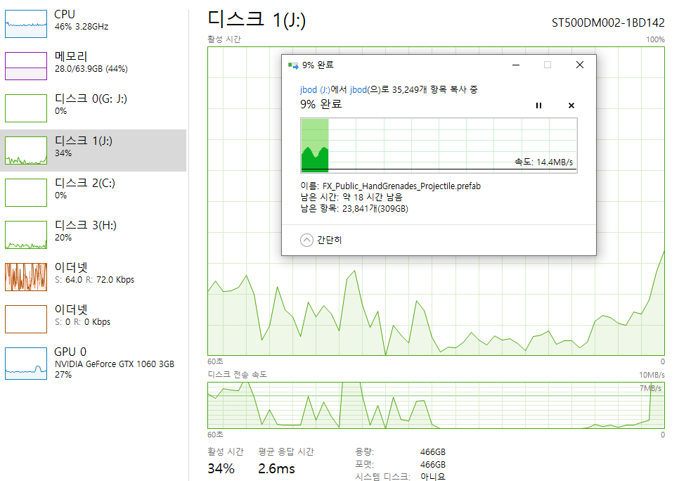 저는 글을 쓰는 시점 디스크를 열심히 백업중입니다.