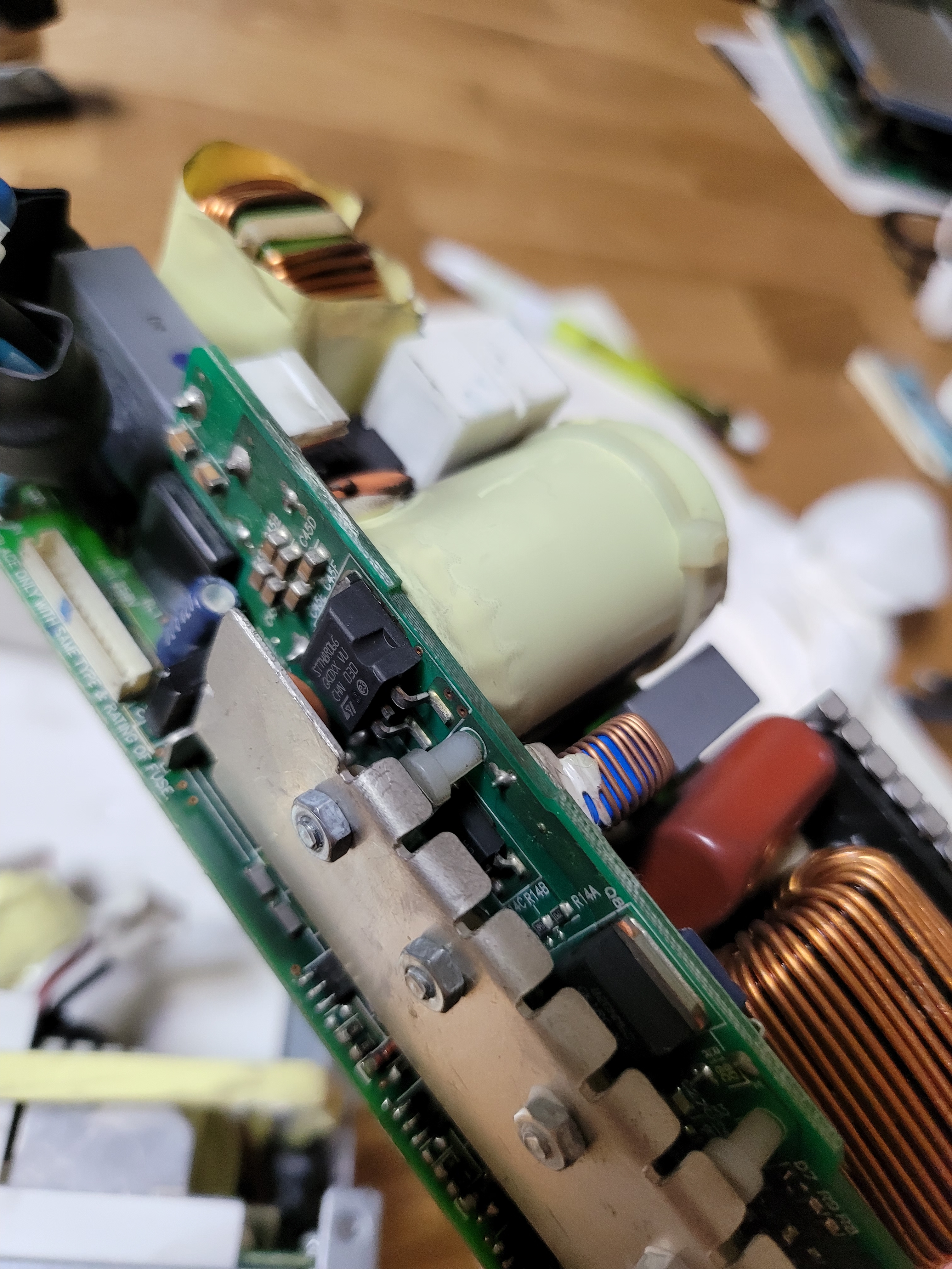 파워와 5V12V 케이블을 제거하면 2부분으로 나뉘어져 있는 파워서플라이 보드가 나옵니다.