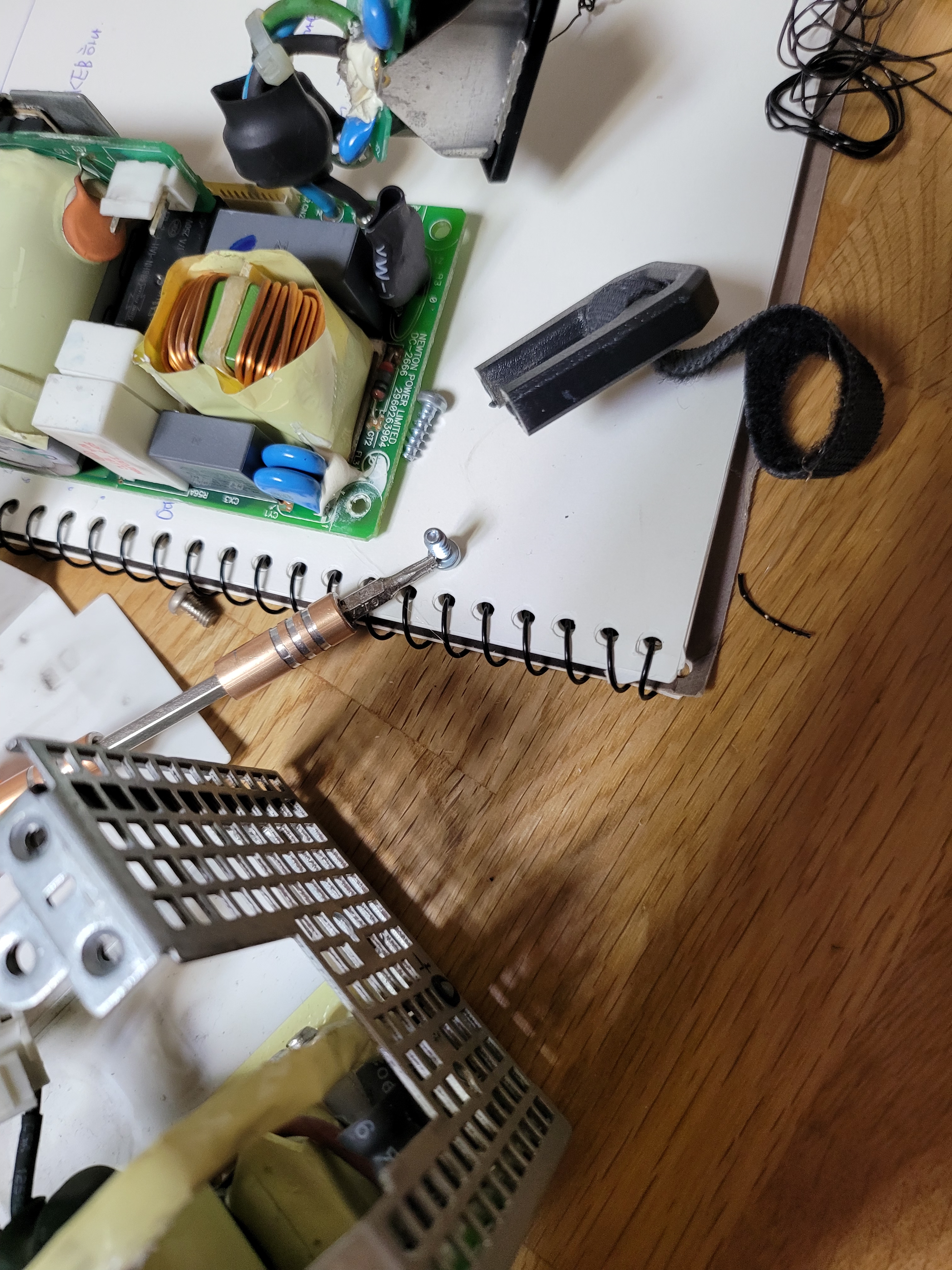 처음엔 밖에서 돌려보려고 했는데 엄청나게 강하게 조여져 있어서 바로 포기하고 PSU를 분해했어요