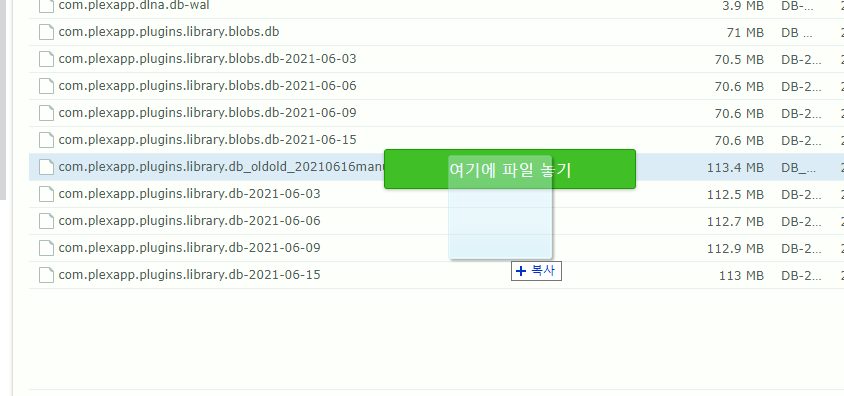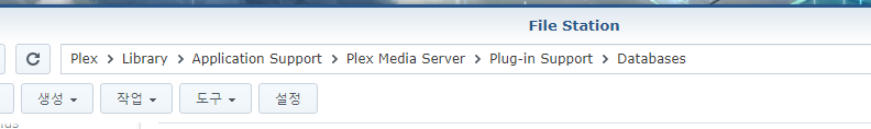 cp /volume1/Plex/Library/Application\ Support/Plex\ Media\ Server/Plug-in\ Support/Databases/com.plexapp.plugins.library.db <원하는경로>