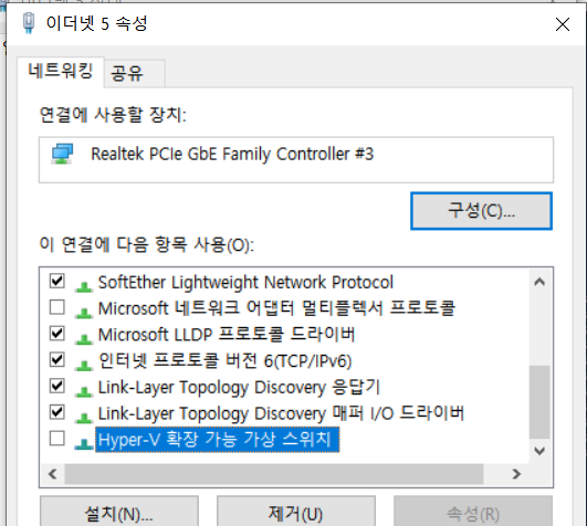 이더넷 5에서 Hyper-V 가상스위치를 삭제하려고 했으니 그걸 찾아봅시다.