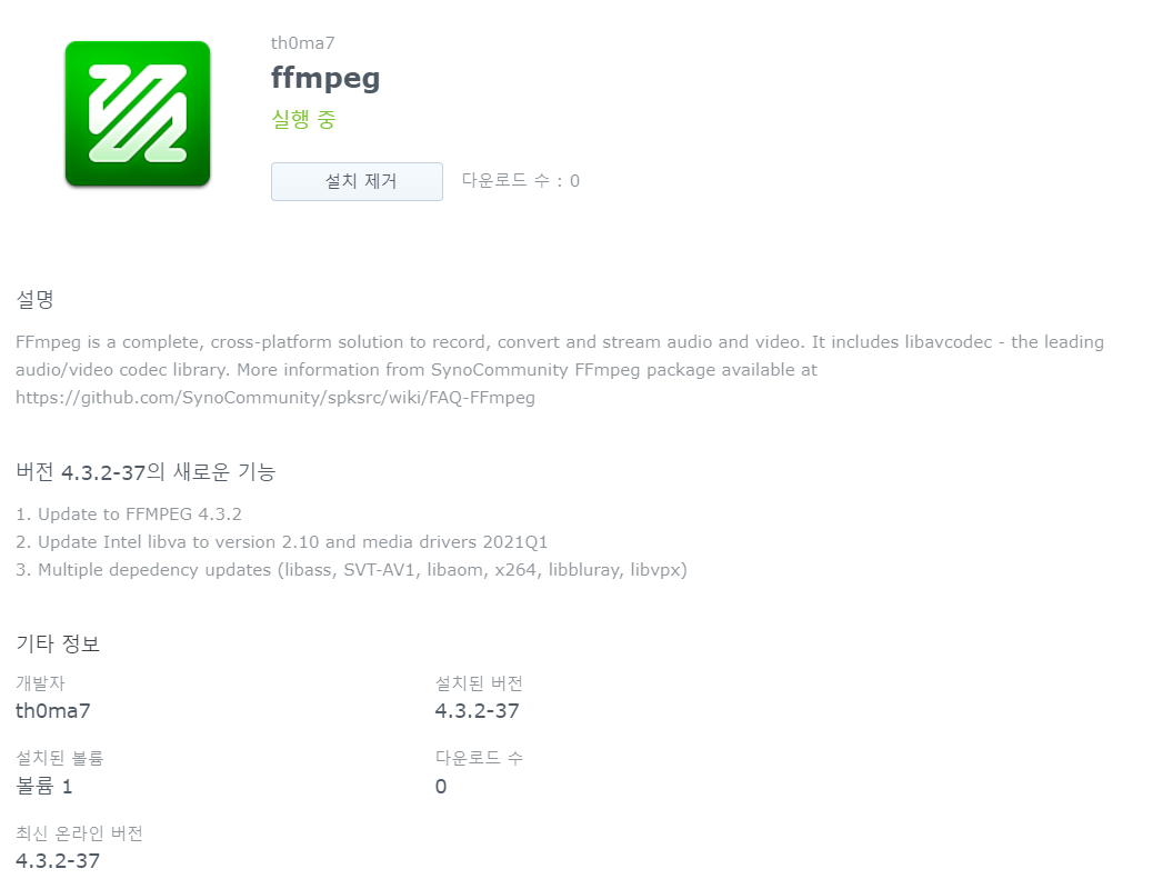 기본 FFMPEG 버전이 2015년에 나온 2.7.7이라서 업데이트해줘야 합니다.