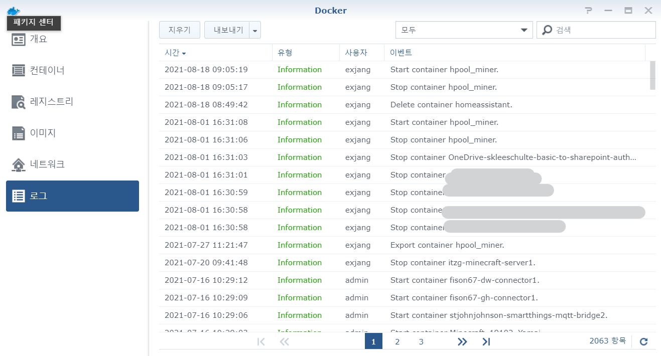 Synology NAS에서 도커 패키지를 사용할 때 모종의 이유로 좀비 컨테이너(켜지지도 않고, 삭제되지도 않아서 아무 것도 할 수 없는 컨테이너)로 남게 되는 컨테이너가 있습니다.