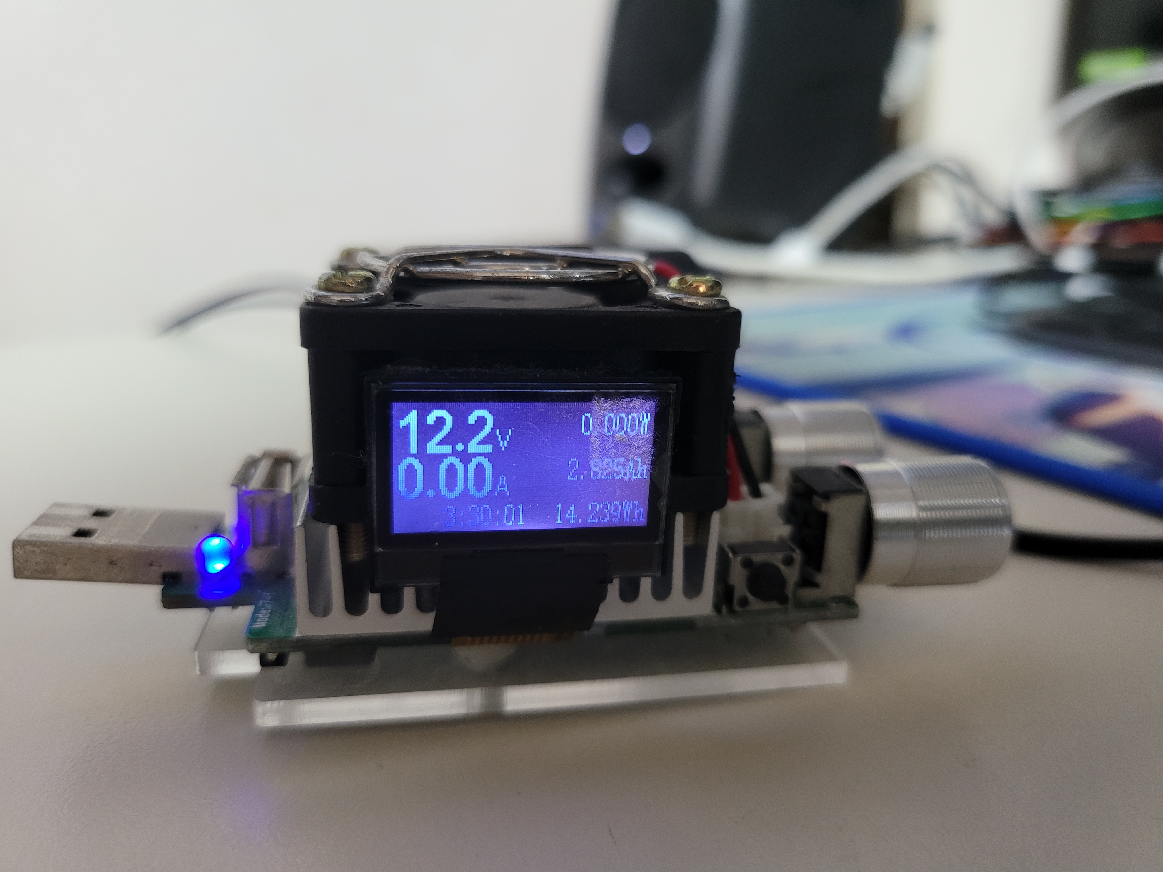 0A 일 때는 PSU와 동일한 12.2V를 뽑아주지만, 2A정도를 인가하면 10 볼트 언저리로 내려가고 모니터는 그보다 더 많은 전력을 소비하기에 7 볼트 언저리까지 내려가는 듯싶습니다.