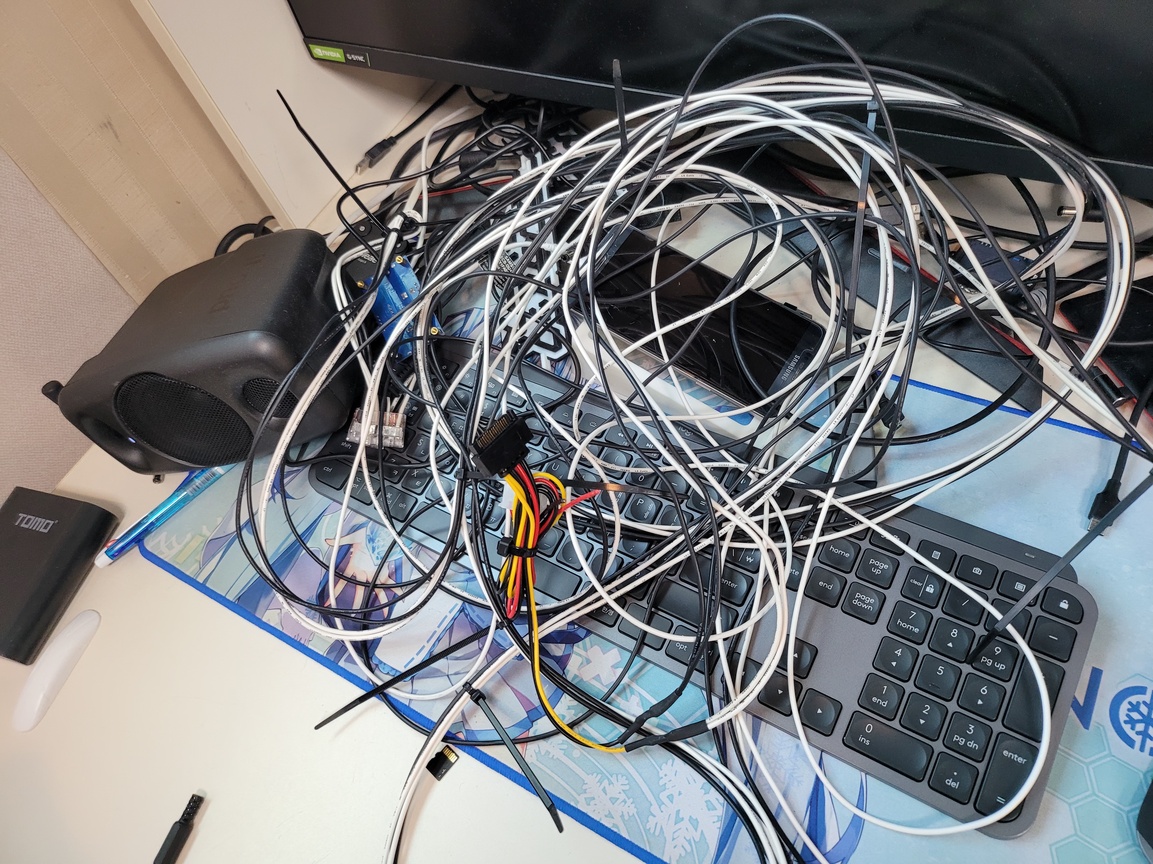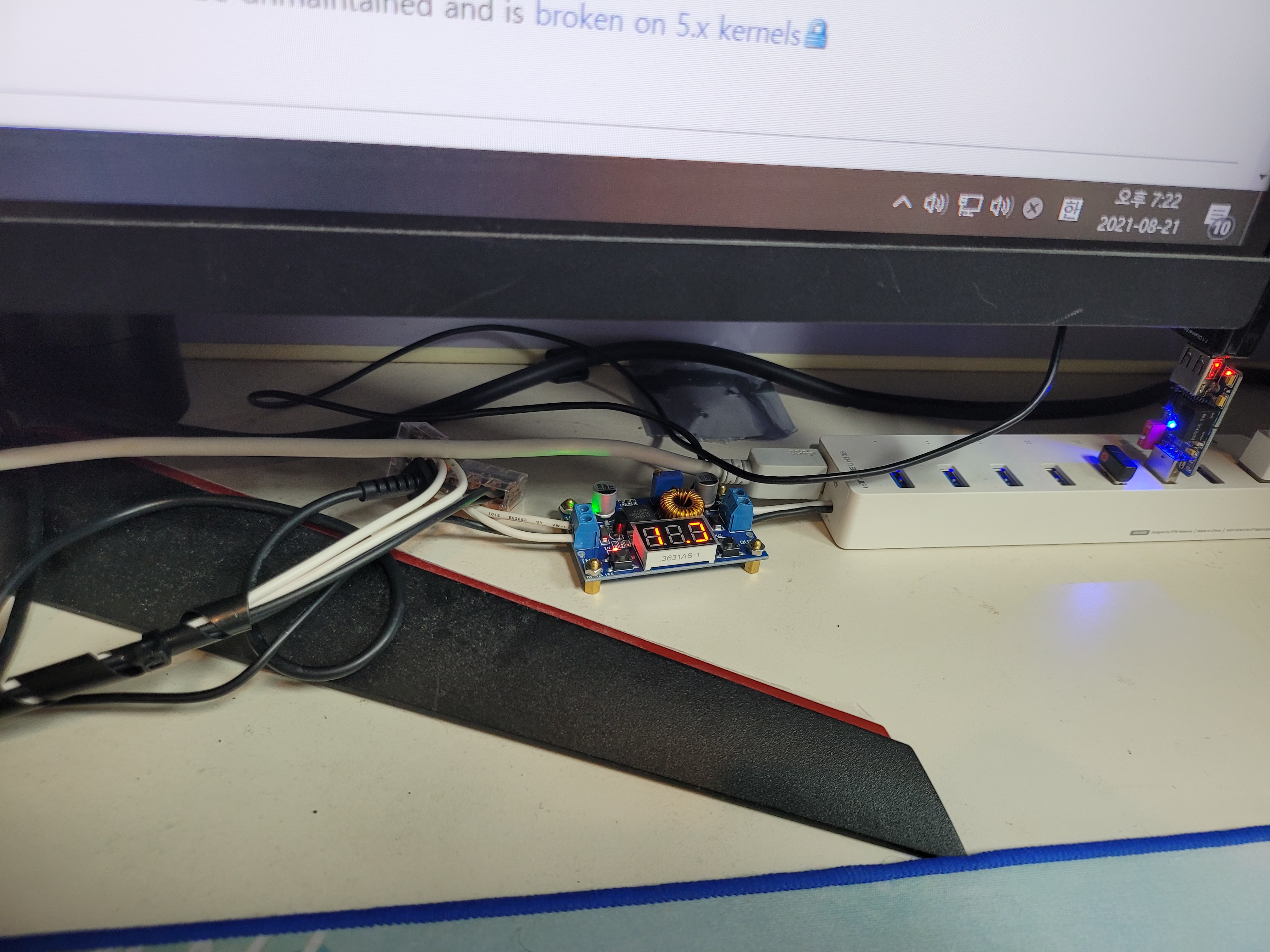책상 위에 있는 모든 장비들이 전부 DC 전원을 사용하기에.. 다들 요리조리 주무르면 저 케이블로 모두 해결할 수 있을지도...
