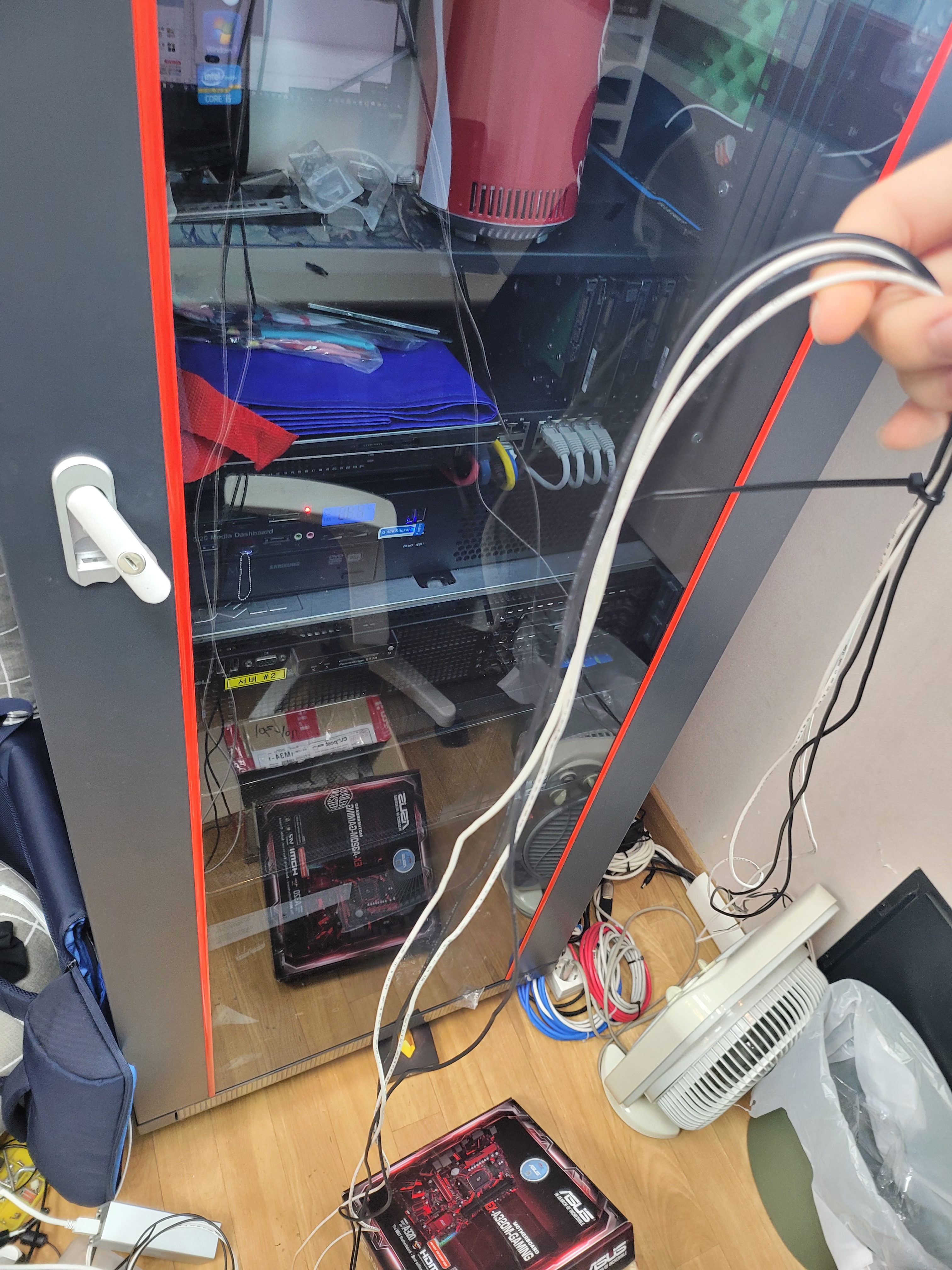 문제없는 걸 확인하고 도선 발열 또는 납땜부 발열도 체크했으니 서버랙 속 PC와 멀리 떨어진 모니터를 서로 연결해보도록 하겠습니다.