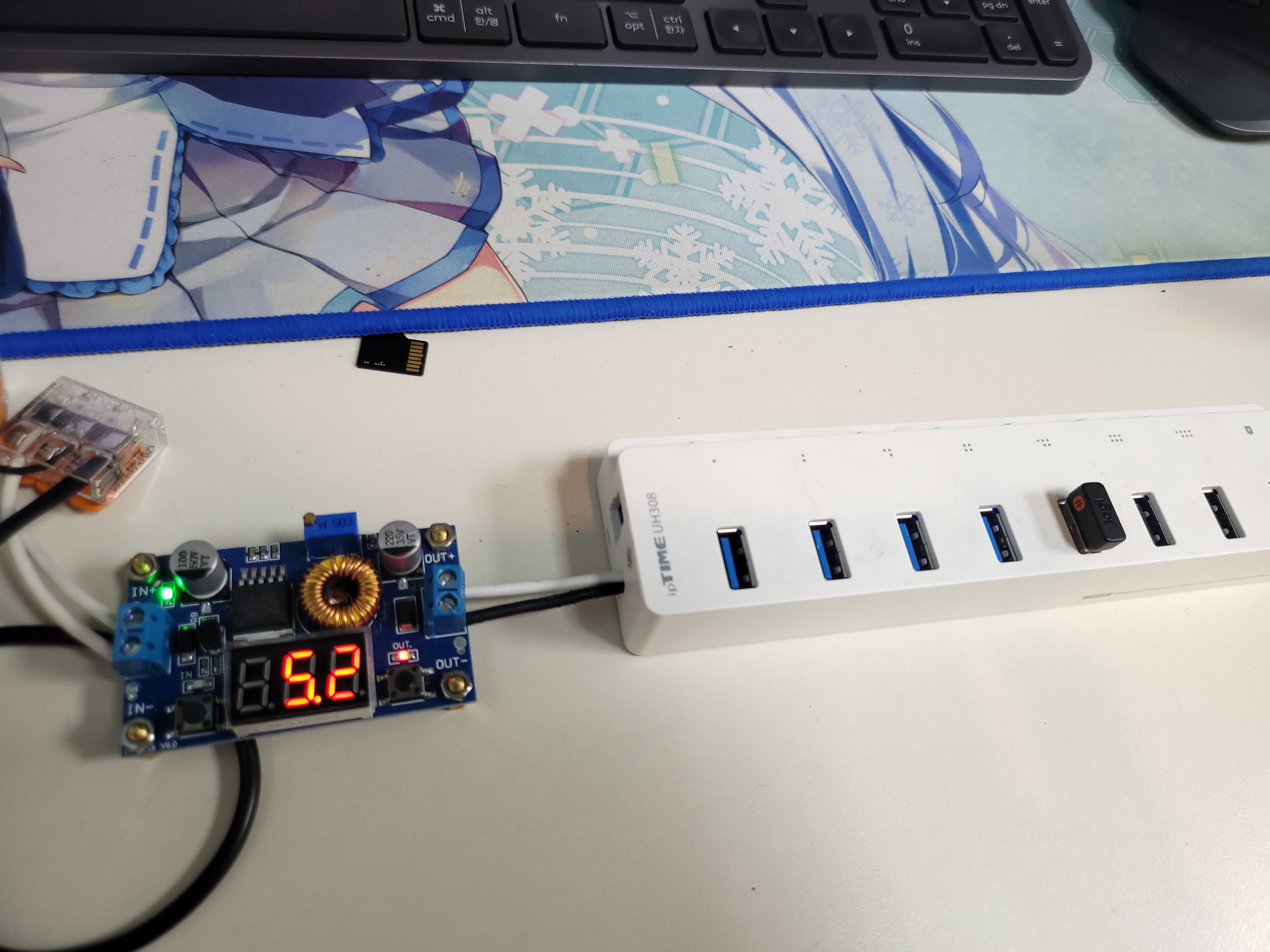 최종 완성 모습입니다. 5.2V를 공급했고 모든 장비들이 더 이상 전압 강하 문제없이 잘 작동합니다.