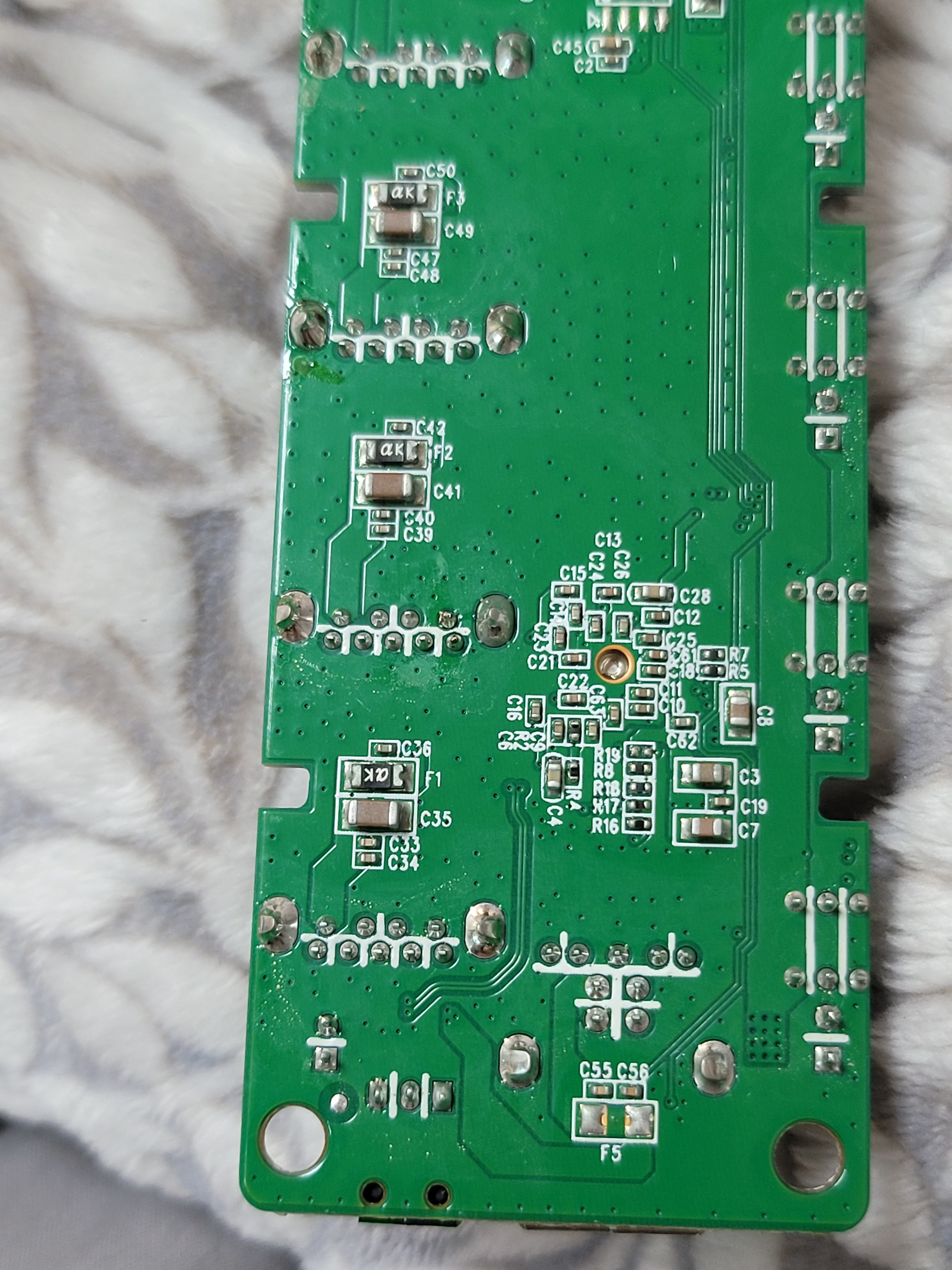 그라운드는 모두 이어져있고 5V쪽에는 캡과 칩퓨즈가 보이네요