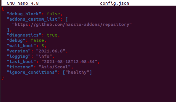 파일의 위치는 시스템마다 다른데 저같은 경우는 우분투여서 /usr/share/hassio 폴더 속에 config.json을 찾으면 됐습니다.