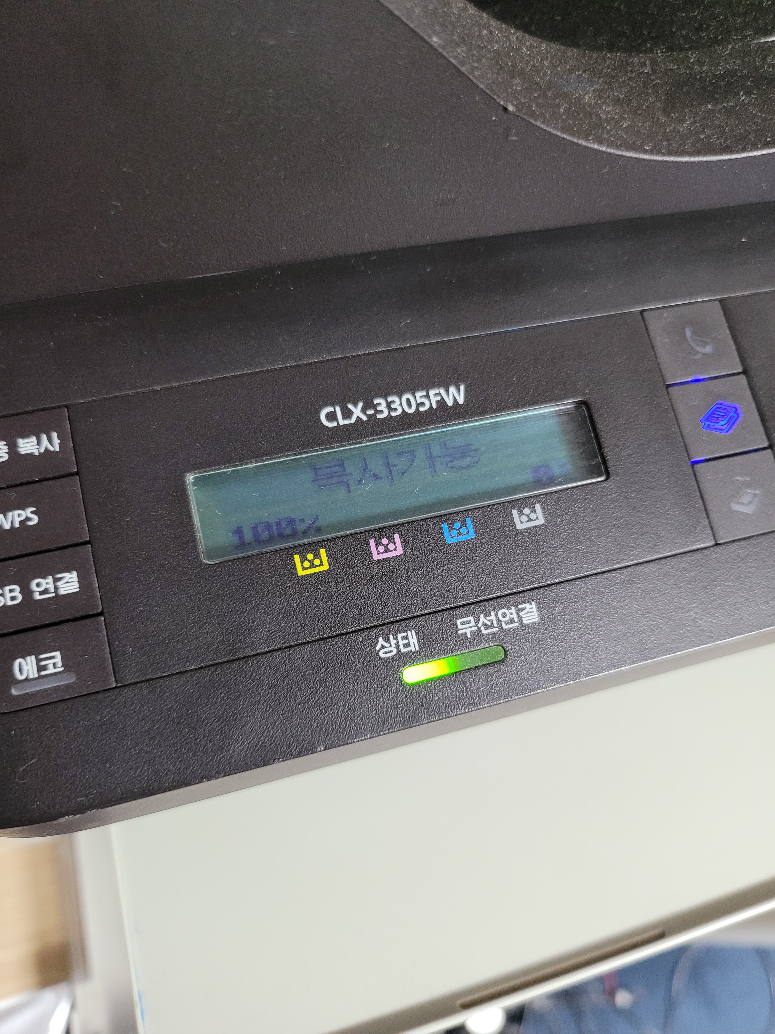 아무리 연결하려고 애써도 안되던 프린터가 이제 문도 부드럽게 닫히고 한방에 복사가능 표시를 띄워주네요
