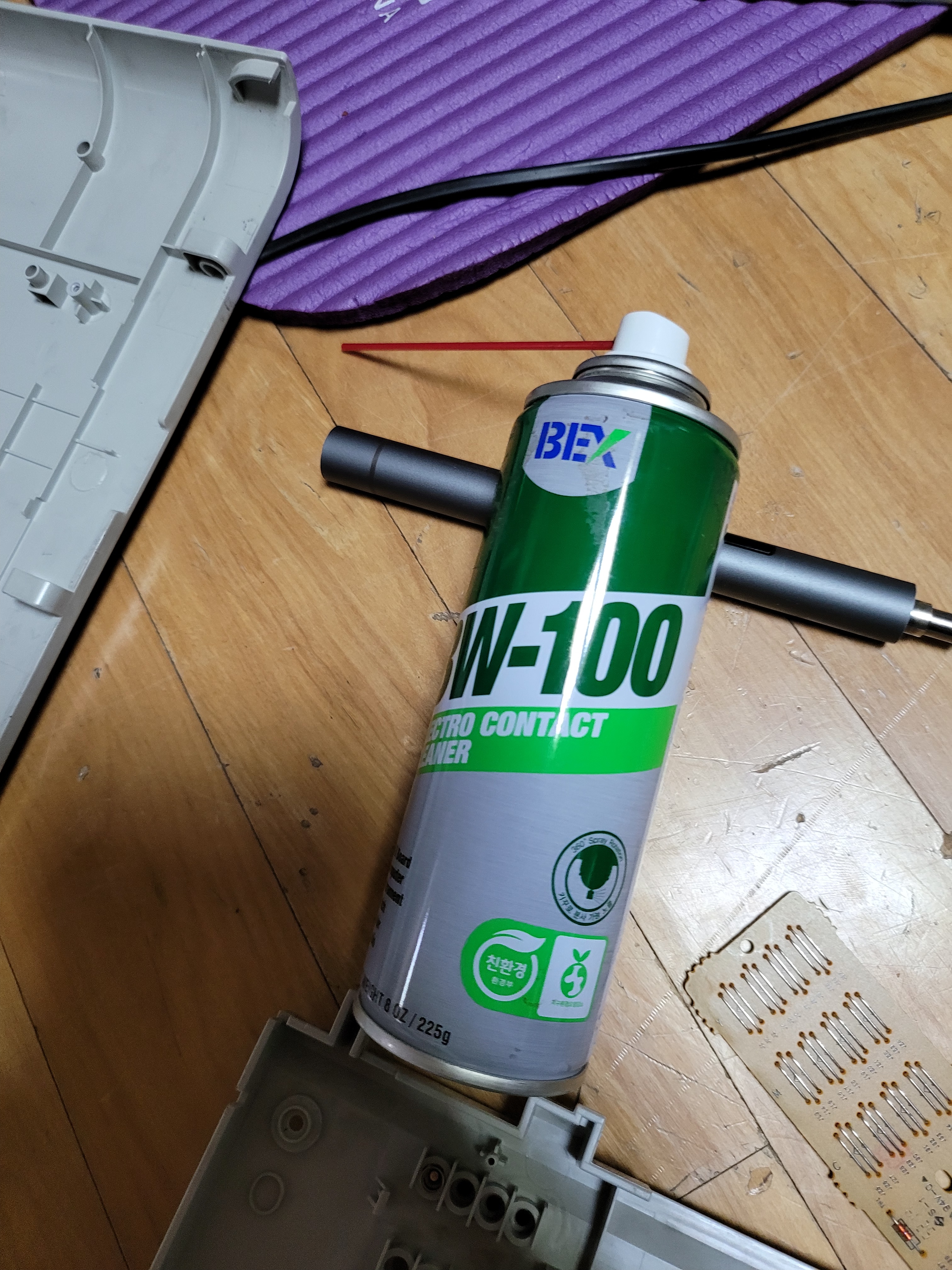 전자제품계의 만병 통치약이라 불리는 접점부활제 BW-100, 켜져있는 전자제품에 마구잡이로 뿌려도 될 정도로 안정적이고 유막과 녹에도 어느정도 효과를 가지고 있습니다.