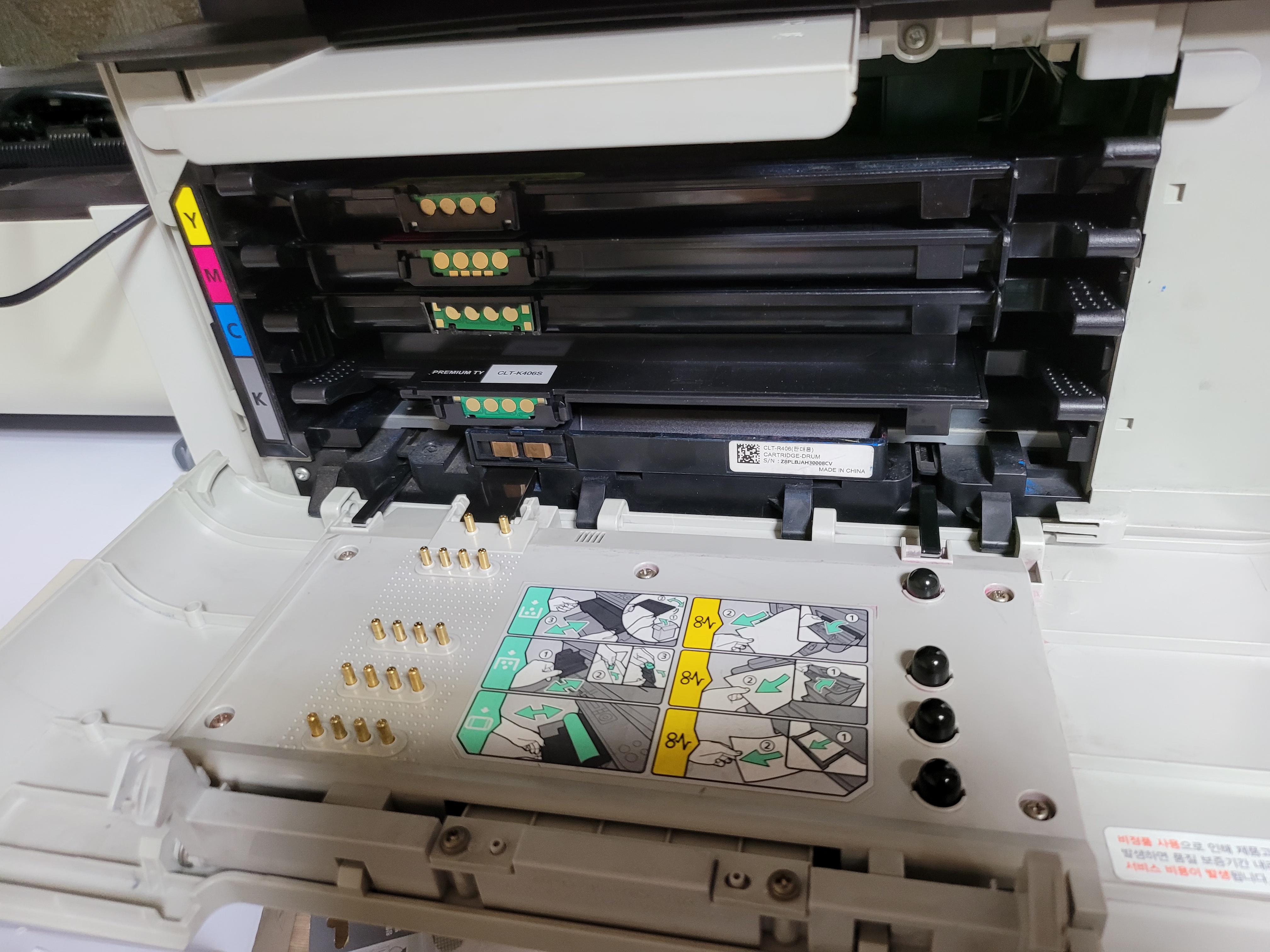 지금 사용하고 있는 CLX-3305FW 프린터는 전면도어 속 칩 인식 포고핀이 알루미늄 비슷한 재질로 되어있어 접점 불량이 시도 때도 없이 일어나 정상 출력이 안 되고 있어서 이걸 최고급 핀으로 바꿔보려 합니다.