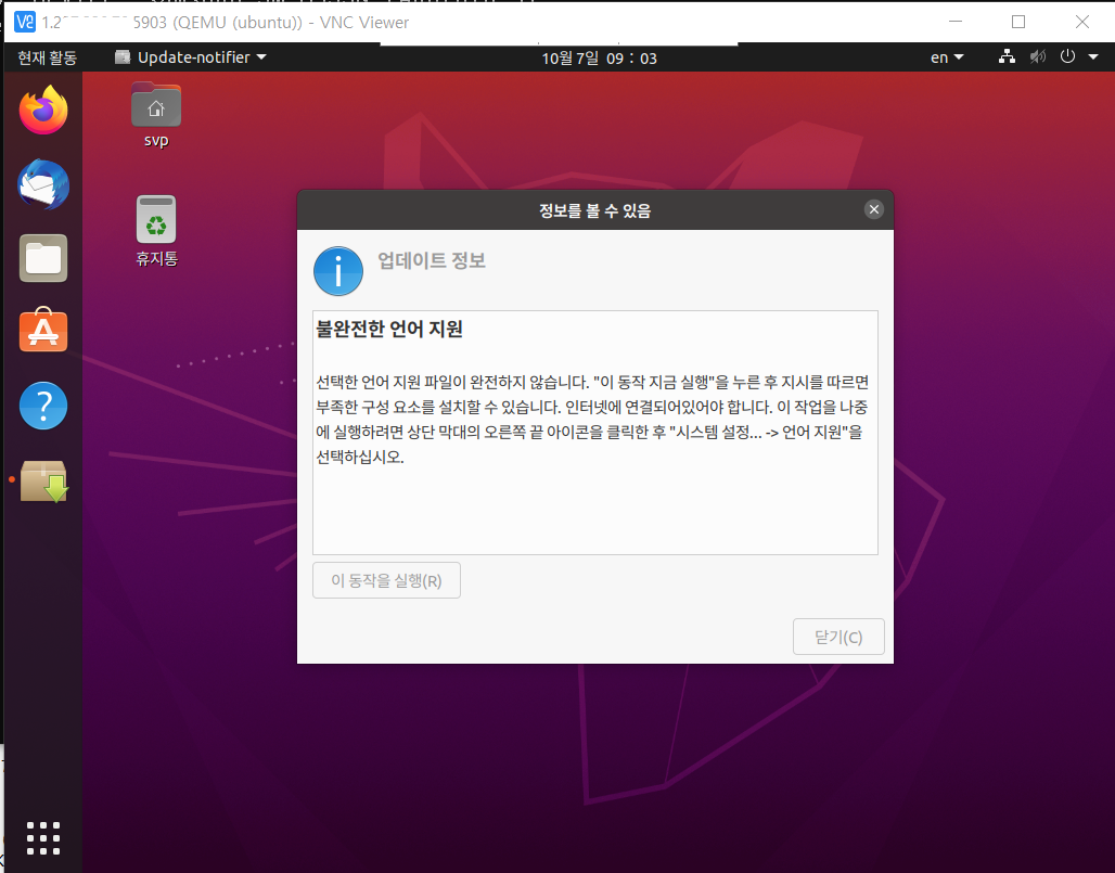 QEMU KVM(우분투 virt-manager)과 RealVNC간 서로 통신하려고 VNC를 열어놨는데 처음 한 번만 접속되고 그다음은 저 메시지가 계속 뜨더군요