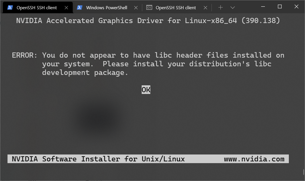 오류: 시스템에 libc 헤더 파일이 설치되어 있지 않습니다. 사용중인 배포판의 libc 개발 패키지를 설치해 주세요. |