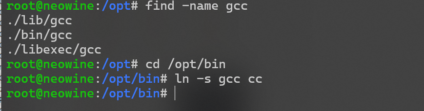 C가 /opt/bin 속에 있으니 거기로 이동해서 cc를 gcc와 링크해줍시다.